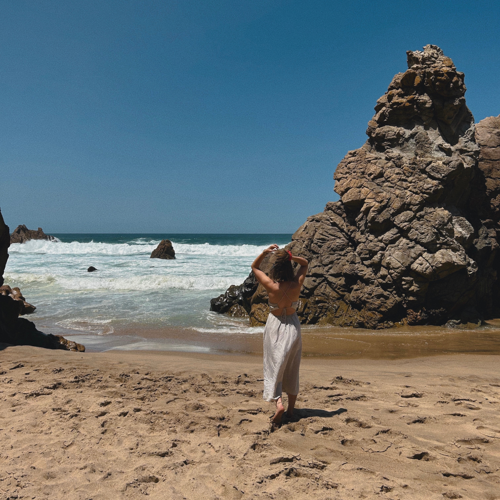 Then, trade royal grandeur for raw nature. Ursa Beach is no ordinary patch of sand. It’s dramatic, unfiltered Atlantic energy — the kind that roars instead of whispers. The ocean doesn’t just roll in here; it crashes, thrashes and performs. The colour palette? Deep-sea blue, mossy green and a fierce white froth that could rival a cappuccino gone rogue.